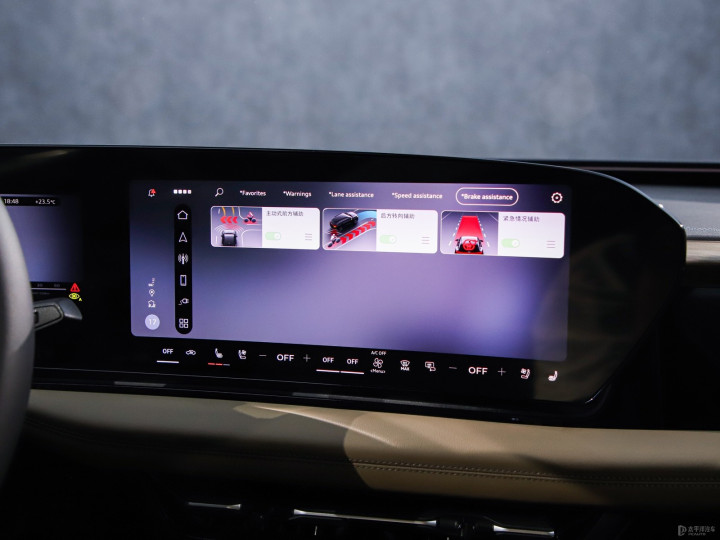 辅助驾驶方面,一汽奥迪A6Le-tron配备了奥迪与华为深度定制的华为乾崑智驾系统,配备有2个激光雷达、5个毫米波雷达、13个摄像头与12个超声波雷达,支持高速及城区NOA功能,并集成跨层记忆泊车、循迹倒车、遥控泊车辅助等高级泊车辅助。
