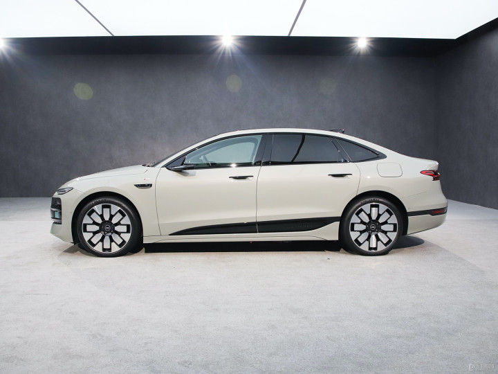车身侧面采用了溜背式设计,配备电子外后视镜和半隐藏式门把手,轮毂造型也颇具时尚感。车身尺寸,新车长宽高分别为5073/1942/1522mm,轴距为3076mm,风阻系数为0.22Cd。
