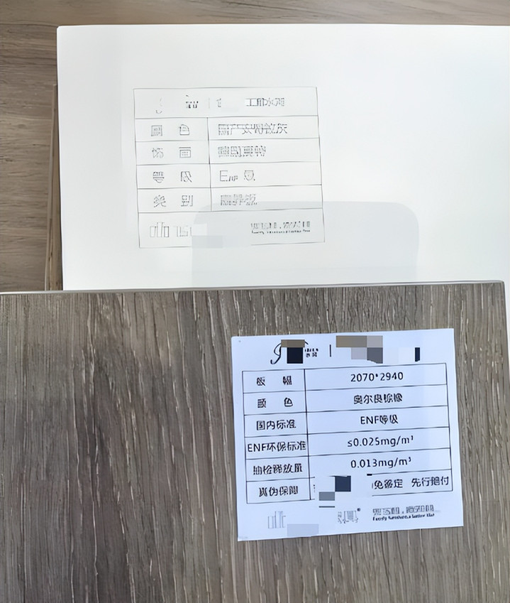 这是最容易动手脚的地方。合同写的是ENF级颗粒板,送来的可能是E0级甚至更差的。现场翻看板件侧面,正规工厂都有喷码或钢印,品牌、环保等级、生产日期一目了然。